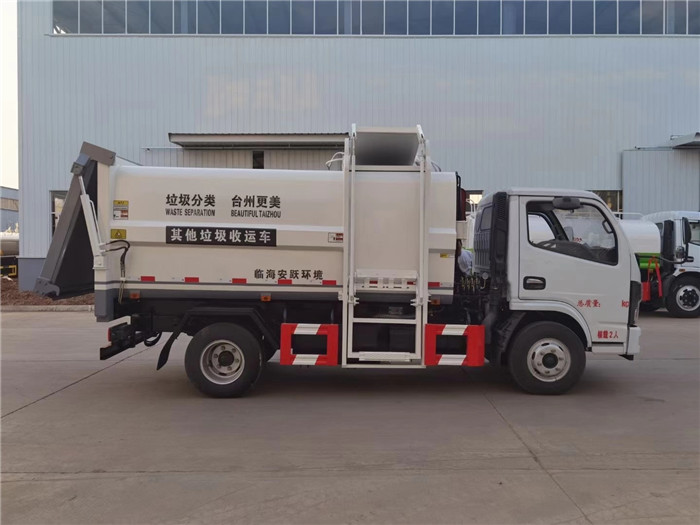 底盤配置 國六東風多利卡D6側裝壓縮式垃圾車底盤采用東風多利卡D6駕駛室1730單排,國六朝柴CY4BK461發動機130馬力,1.8噸前橋,3.5噸后橋,7.00R16鋼絲胎,斷氣剎,帶ABS,萬里揚5檔變速箱,電動門窗,帶空調,中控鎖,188雙層大梁。 上裝配置 國六東風多利卡D6側裝壓縮式垃圾車容積:6立方,基本配置:推板樣式為全推,箱體底部不帶自卸,配備長源油泵,中梅多路閥,淮壓開啟和關閉,拉桿式提升機,高強度自鎖式后蓋。 車型優勢 側裝壓縮式垃圾車是通過拉桿提升垃圾桶自動倒入垃圾,并往車廂后方推動擠壓垃圾,達到壓縮垃圾的目的,壓縮原理是采用機、電、液壓聯動控制系統、電腦控制及手動操作系統,通過填裝器和推鏟等裝置實現垃圾倒入,壓碎或壓扁,并將垃圾擠入車廂并壓實和推卸。其優勢是:壓縮比大、裝載量高:最大破碎壓力達12噸,裝載量相當于同噸級非壓縮垃圾的兩倍半 湖北程力國六東風多利卡藍牌側裝掛桶自裝卸式垃圾車(帶壓縮)程力威牌CLW5040ZZZSL6型自裝卸式垃圾車CLW5040ZZZ6CD型自裝卸式垃圾車CLW5045ZZZKDL型自裝卸式垃圾車多方位圖片: