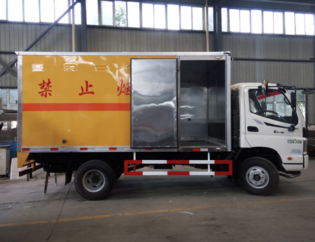專用功能說明: 1、爆破器材運輸車底盤的型號可分為:東風、江鈴、江淮、奧鈴、時代、歐曼、慶鈴、解放等。驅動形式可分為:雙驅動和四驅動,按額定載質量有0.5噸—9.9噸(國防科工委要求最大上戶噸位不超過10噸)。 2、廂體分為兩部分:A:運輸炸藥;B:運輸雷管(抗暴容器);C:炸藥,雷管同時運輸(廂體必須隔倉,分倉運輸,加裝抗爆容器)。廂體為雙層金屬骨架結構,外部為冷扎鋼板,內壁采用鋁合金板蒙面,夾層為隔熱阻燃材料填充。設置對開門,如需安裝抗暴容器則增開側門,側壁設有防雨功能自然通風窗口,以使廂內外空氣流動,廂體內部做防靜電處理,廂體底部與廂內前部鋪有阻燃導靜電膠板,并與底盤等電位連接,通過車輛后端的導靜電裝置與大地相連,可防止靜電火花的產生和車輛靜電及時釋放,提高爆破器材運輸車的安全性。廂體內部前面和側面裝有固定拉環,與捆綁帶使用捆綁貨物以避免移動,保證安全。 3、 感煙報警器:是感測車廂內火情的專用裝置,安裝在車廂內頂部,并與駕駛室內報警裝置連接,當有火情煙霧出現,在駕駛室進行蜂鳴報警通知駕駛員,保證及時消除險情。 4、防盜報警器:為了保證安全,在車廂后方和側面開設有門,在各門器框上方安裝有門磁開關報警器(根據用戶要求選裝防盜監視器。行車記錄儀等)當廂門被打開時,駕駛室內的蜂鳴器發出報警聲音,不使用時可將駕駛室內的控制開關關閉。可保證在行駛過程中,整車始終處于受控狀態。 5、整車發動機排氣裝置采用前置式,并安裝有排氣火花熄滅器(防火罩),防止熱源對爆炸物產生不良影響。 6、底盤上裝有兩條拖地導靜電膠帶,廂體外側安裝示廓標記燈以及手提滅火器等安全裝置。 7、車身顏色為黃色,并有“嚴禁煙火”和“爆”字樣,貼有反光標識。 目前炸藥運輸車,雷管運輸車,防爆車,以及煙花爆竹運輸車都歸為爆破器材運輸車,這并且類車輛都具有廂體強度高、防火阻燃、防雨、防止靜電火花、煙火報警和防盜報警等主要功能,現在的爆破器材運輸車已經脫離原來的平板運輸,而改為廂式運輸 ,所以本次介紹的爆破器材運輸車都為廂式運輸。 排氣火花熄滅器 對于爆破器材運輸車來說,要將車輛發動機排氣管應前置,并且應該安裝排氣火花熄滅器。安裝在排氣管尾端,對機動車廢氣進行冷卻,從而熄滅廢氣內夾帶的火花。 導靜電橡膠拖地帶 導靜電橡膠拖地帶是安裝在車輛底架上的,能將靜電導入大地,使箱體始終處于零點位,防止靜電火花的產生。 此外車架上油管以及蓄電池都要加裝防護裝置,避免因為油電的泄露而發生隱患。 離子感煙火災探測器 貨廂內部應具有良好的感煙霧報警性能。當有煙霧發生時,應在3分鐘內感煙火災探測器報警,駕駛室內置報警裝置,報警聲音強度100分貝以上。 導靜電膠板 貨廂底板上應鋪設阻燃導靜電膠板,并使用導靜電粘接劑粘固,膠液涂抹均勻,膠板粘接平整,接口嚴密,縫隙盡量減小,并用粘接劑填充,并且膠板不應起皺或翹曲。 抗爆容器 抗爆容器宜裝在后倉內。隔離墻的厚度不應小于80mm。墻的夾層內應裝入能吸收爆炸沖擊波能量且不燃(或阻燃)的材料;安裝抗爆容器時,泄爆孔的位置應避免與汽車底盤的重要零部件相對峙。 通風窗、通風口 通風窗通過專用模具一次性壓制成型,具有防雨、通風作用。而通氣口安裝在側廂內壁板上與通風窗對應處,都是確保廂內空氣流通。 警示標識 貨箱外還應涂裝安全告示、爆炸品菱形標示、危險指示燈、橙色爆字等表示,方便其他人員識別與發現。 貨箱蒙皮 貨廂內蒙皮材料應選用撞擊不發生火花的阻燃材料,可采用有色金屬材料或船用膠合板,船用膠合板內表面應涂防火涂料。貨廂內外蒙皮之間的空隙應用阻燃隔熱的材料填充,金屬外蒙皮的外側應噴涂淺色漆。 此外貨廂內嚴禁安裝照明燈具等電氣設備,避免電氣因為泄露而導致安全隱患。 |