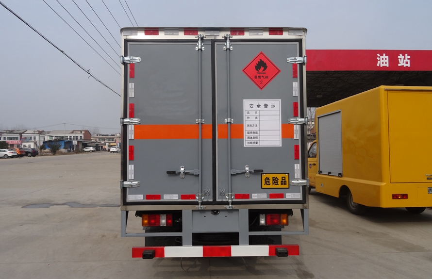 2類:獨立容器包裝的介質為:GB 12268-2012《危險貨物品名表》第2.1項的液化石油氣,壓縮天然氣氣瓶,2.2項中的氧氣,氮氣,二氧化碳氣瓶。 3類:獨立容器(瓶)包裝的乙醛,甲(乙)苯,丙酮,樟腦油,二硫化碳,二丁醚,煤油,甲(乙)醇,液體粘合劑,涂料或涂料溶液,甲醛溶液,印刷油墨或相關材料等.運輸介質類別:3。 廂體工藝材質: 1、廂體部分:廂體為雙層金屬骨架結構,外部為冷扎鋼板,內壁采用鋁合金板蒙面,夾層為隔熱阻燃材料填充。設置對開門,側壁設有防雨功能自然通風窗口,以使廂內外空氣流動,廂體內部做防靜電處理,廂體底部與廂內前部鋪有阻燃導靜電膠板,并與底盤等電位連接,通過車輛后端的導靜電裝置與大地相連,可防止靜電火花的產生和車輛靜電及時釋放,提高易燃氣體廂式運輸車的安全性。廂體內部前面和側面裝有固定拉環,與捆綁帶使用捆綁貨物以避免移動,保證安全。 2、 防漏報警器:是感測車廂內火情的專用裝置,安裝在車廂內頂部,并與駕駛室內報警裝置連接,當有火情煙霧出現,在駕駛室進行蜂鳴報警通知駕駛員,保證及時消除險情。 3、防盜報警器:為了保證安全,在車廂后方和側面開設有門,在各門器框上方安裝有門磁開關報警器(根據用戶要求選裝防盜監視器。行車記錄儀等)當廂門被打開時,駕駛室內的蜂鳴器發出報警聲音,不使用時可將駕駛室內的控制開關關閉。可保證在行駛過程中,整車始終處于受控狀態。 4、整車發動機排氣裝置采用前置式,并安裝有排氣火花熄滅器(防火罩),防止熱源對爆炸物產生不良影響。 5、底盤上裝有兩條拖地導靜電膠帶,廂體外側安裝示廓標記燈以及手提滅火器等安全裝置。 6、車身顏色為黃色,并有“嚴禁煙火”和“易燃”字樣,貼有反光標識。 底盤配置: 采用五十鈴600P底盤,五十鈴120馬力國五柴油發動機,5檔變速箱,7.00鋼絲胎,前橋盤式制動,前置排氣管,ABS,限速80Km。 |