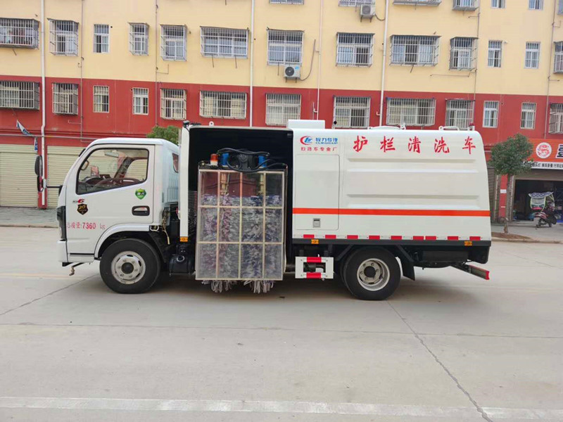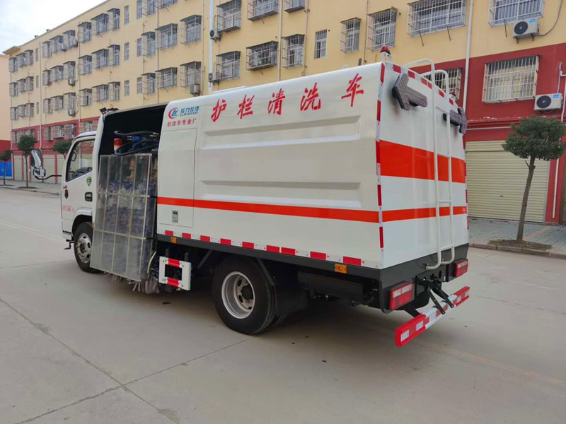 湖北程力國六東風(fēng)多利卡城市護欄清洗車產(chǎn)品簡介: 公司根據(jù)市場需求,自主研發(fā)設(shè)計了該護欄清洗車。機械化清洗作業(yè)不僅提高了護欄清潔工作的工作效率,同時也提高了環(huán)衛(wèi)工人護欄清洗工作的安全性,具有工作效率高,清洗作業(yè)安全可靠等特點。 1. 采用雙面清洗裝置,四組滾掃夾緊隔離護欄轉(zhuǎn)動洗刷、高壓水輔助沖洗、電液控制的作業(yè)方式對隔離護欄進行清洗作業(yè),確保全方位清洗隔離護欄,無清洗死角。 2. 副發(fā)動機離合器采用程控自動離合,操作人行化,提高了副發(fā)動機的工作可靠性和使用壽命。 3. 設(shè)置低壓水清洗、高壓水清洗二種工作模式。 4. 采用智能化控制系統(tǒng),電氣系統(tǒng)、液壓系統(tǒng)集中控制,操作簡單。 5. 液壓系統(tǒng)安裝了液壓油冷卻器、液壓油油位報警裝置,提高了設(shè)備可靠性和安全性,確保護欄清洗車能持續(xù)高效作業(yè)。 6. 設(shè)置了護欄清洗機構(gòu)回位報警裝置,確保車輛轉(zhuǎn)場作業(yè)時的安全性。 7. 護欄清洗機構(gòu)安全互鎖裝置,提高作業(yè)安全性,即使駕駛員誤操作也不會對機構(gòu)造成損壞。 8. 采用擺臂式護欄清洗裝置,駕駛員操作方便、快捷。 9. 滾掃掃刷加入氈布條刷毛,加大清掃時的接觸面積,確保全面清潔隔離護欄,避免破壞護欄的漆面。 湖北程力國六東風(fēng)多利卡城市護欄清洗車車輛主要性能參數(shù) 項 目 | 主要性能參數(shù) | 車 型 | 東風(fēng)多利卡護欄清洗車CLW5070GQX6CD | 底盤型號、類別、生產(chǎn)企業(yè) | EQ1075SJ3CDF二類 東風(fēng)汽車股份有限公司 | 發(fā) 動 機 | 主機 | 底盤發(fā)動機型號及生產(chǎn)企業(yè) | CY4BK4611東風(fēng)汽車股份有限公司 | 功率 kw | 95(130馬力) | 排量 ml | 3707 | 副機 | 發(fā)動機型號及生產(chǎn)企業(yè) | JX493ZG3 江鈴汽車股份有限公司 | 功率 kw | 64(87馬力) | 排量 ml | 3111 | 燃油種類 | 0號輕柴油(與底盤共用柴油箱) | 尺寸 參數(shù) 質(zhì)量 | 外形尺寸(長X寬X高)mm | 5980×2200×2600 | 輪距 | 前輪mm | 1503 | 后輪mm | 1494 | 軸距mm | 3308 | 額定乘員 | 2人 | 前懸/后懸mm | 1040/1642 | 接近角 | 20° | 離去角 | 12° | 最小離地間隙mm | 220 | 整備質(zhì)量 kg | 4980 | 最大總質(zhì)量kg | 7360 |