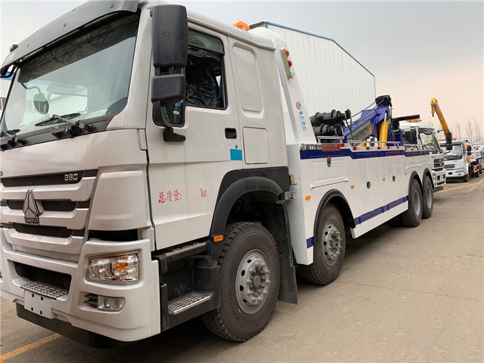 國六豪沃前四后八托吊連體重型清障車配置:國六重汽400馬力發(fā)動機,1200R20鋼絲胎,十檔箱,斷汽剎,原廠空調,ABS。 16T16D上裝或20T20D上裝,二節(jié)式六邊型吊臂,三節(jié)托臂,分體式車廂,雙側聯動操作裝置,,兩個十噸液壓卷揚,四十五米鋼絲繩,直徑18MM,配四套鋼叉,一套拖叉套,一套鋼板吊耳拖叉,一套抱胎裝置.輔助燈一套,輔助氣管總成一套,捆綁鏈條兩根;(16T16D上裝標配2個8噸卷揚)。 湖北程力國六豪沃前四后八托吊連體重型清障車程力威牌CLW5430TQZZ6型CLW5310TQZZ6清障車圖片價格: