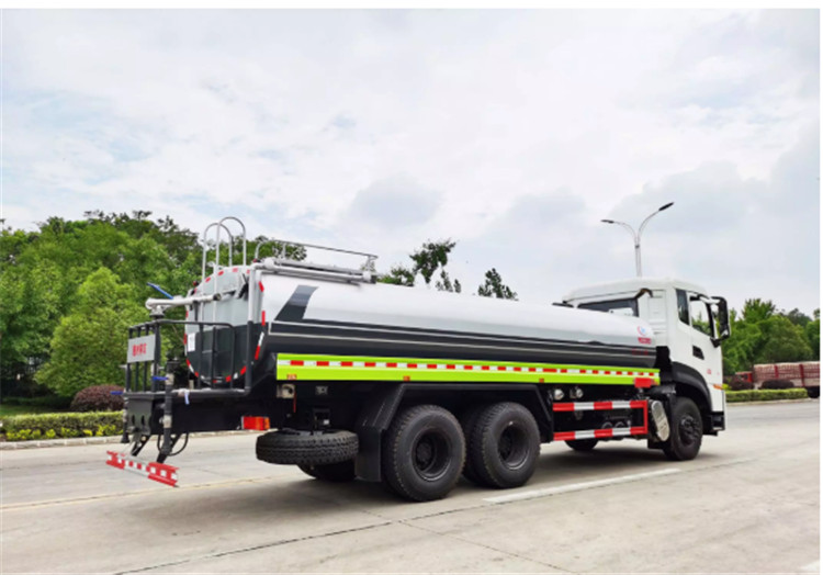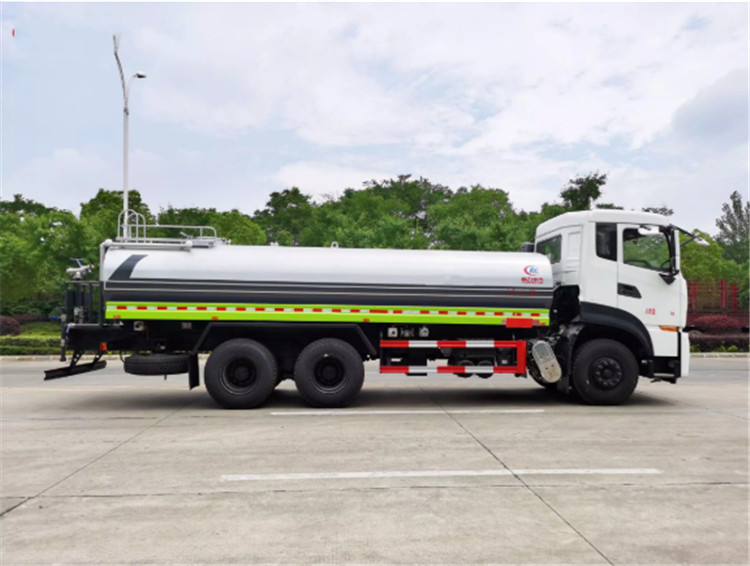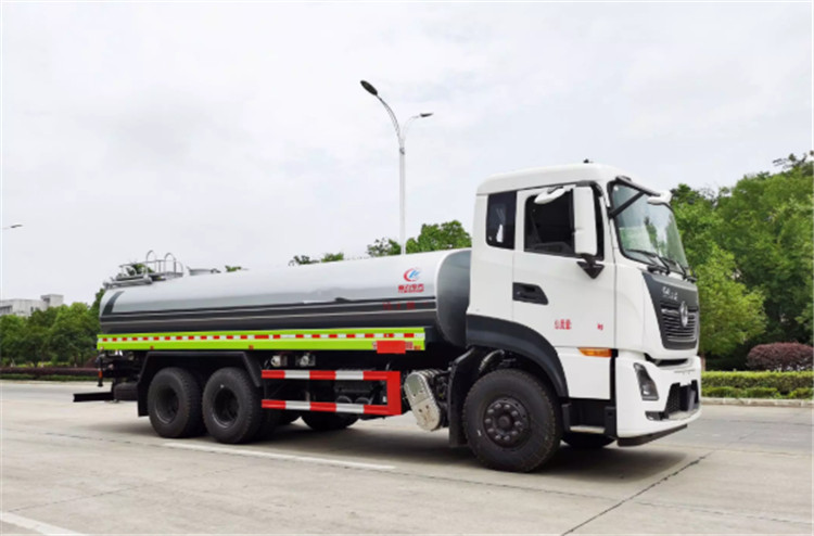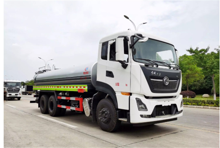 東風(fēng)天龍KL/VL后雙橋灑水車是一款采用國六排放標(biāo)準(zhǔn)東風(fēng)天龍后雙橋原裝底盤改裝的環(huán)衛(wèi)車,該車配置豪華,駕乘舒適,該車罐體容積:18立方米,標(biāo)配前沖、后灑、側(cè)噴、后平臺高炮,是園林綠化、小區(qū)物業(yè)、公路養(yǎng)護(hù)的常用車型。 國六東風(fēng)天龍后雙橋18方高端灑水車(綠化噴灑車)底盤配置:采用東風(fēng)天龍后雙橋原裝底盤,東風(fēng)天龍豪華駕駛室,4400+1350mm軸距,搭載國六(國Ⅵ)東風(fēng)康明斯290馬力柴油發(fā)動機(jī),功率213kw;東風(fēng)商用DDi350馬力柴油發(fā)動機(jī),功率257kw,國六排放,陜齒法士特9檔變速箱,11.00R20鋼絲胎/295真空胎,前橋5T,后橋雙10T,方向助力,斷氣剎,排氣制動,原裝空調(diào),行駛記錄儀,多媒體顯示屏,電動門窗,中控鎖,氣囊座椅,ABS。 國六東風(fēng)天龍后雙橋18方高端灑水車(綠化噴灑車)專用配置:罐體容積:18立方米,罐體鋼板為4mm碳鋼Q235材質(zhì)專用容積板一次成型,罐內(nèi)隔板具有防波作用,以減輕汽車行駛時罐體液體沖擊;配大功率專用灑水泵,泵可自吸自排;整車前沖、后灑、側(cè)噴、后平臺帶綠化灑水炮,灑水炮可全方位旋轉(zhuǎn),可連續(xù)調(diào)成直沖狀、大雨、小雨、毛毛雨;前封頭帶水位計,后平臺主管路帶1寸澆花接口,后爬梯,帶1個消防接頭,帶1個自流閥,1個過濾裝置。