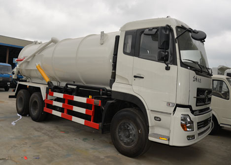 湖北程力威牌東風天龍后雙橋16方CLW5251GXWD5型吸污車 【整車技術參數】 | 產品商標 | 程力威牌 | 公告批次 | 290 | 產品名稱 | 吸污車 | 產品型號 | CLW5251GXWD5 | 總質量(Kg) | 25000 | 罐體容積(m3) | 15.48 | 額定載質量(Kg) | 11800 | 外形尺寸(mm) | 9590×2500×3800 | 整備質量(Kg) | 13005 | 貨廂尺寸(mm) | ×× | 額定載客(人) | | 準拖掛車總質量(Kg) | | 駕駛室準乘人數(人) | 3 | 鞍座最大載質量(Kg) | | 接近角/離去角(°) | 18/12 | 前懸/后懸(mm) | 1500/2390 | 軸荷(Kg) | 7000/18000(二軸組) | 最高車速(Km/h) | 90 | 備注 | 1、運輸介質:液態污物,密度:800千克/立方米,罐體有效容積:15.48立方米;罐體尺寸(直段長×直徑)(mm)為:5500×2000;2、文字噴涂位置和車輛顏色可變化,隨底盤選裝駕駛室。3、防護材料:Q235A碳鋼,連接方式:左右側面與大梁采用焊接連接,后下部防護均采用焊接連接,后部防護斷面尺寸(mm):150×50,后部防護離地高度(mm):480。4、 ABS生產廠家:東科克諾爾商用車制動系統(十堰)有限公司;型號:3631010-C2000。 | 【底盤技術參數】 | 底盤型號 | DFL1250A13 | 底盤名稱 | 載貨汽車底盤 | 商標名稱 | 東風牌 | 生產企業 | 東風商用車有限公司 | 軸數 | 3 | 輪胎數 | 10 | 軸距 (mm) | 4350+1350,5350+1350,5700+1350,3800+1350 | 輪胎規格 | 11.00-20 18PR,11.00R20 18PR,295/80R22.5 18PR | 鋼板彈簧片數 | 8/9,8/10,9/108/9,8/10,9/10 | 前輪距(mm) | 2040 | 燃料種類 | 柴油 | 后輪距(mm) | 1860/1860 | 排放依據標準 | GB3847-2005,GB17691-2005國Ⅴ | 發動機型號 | 發動機生產企業 | 排量(ml) | 功率(Kw) | ISD245 50 ISD270 50 | 東風康明斯發動機有限公司 東風康明斯發動機有限公司 | 6700 6700 | 180 198 |