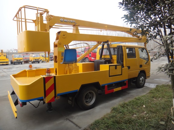★ 湖北程力高空作業車股份有限公司生產的高空作業車系列產品,釆用原裝底盤(日本技術)、帶空調、方向助力、平頭、雙排(或帶臥),可容納更多的作業人員。配置工作籃;帶電絕緣裝置,經受實戰檢驗,性能穏定可靠。主要用于電氣線路檢俢、高空作業清洗、樹木剪枝等高空作業使用。 ★ 采用國產、進口換向閥及液壓油缸,換向平衡,操作靈活方便。隨車安裝四個H型液壓支腿,可同時升降也可單獨升降, 支腿與工作臂互鎖,防止誤操作過位,以保證整車在操作時的穩定性與安全性。可上下操作、加裝吊鉤,吊鉤最大起重質量500kg,三節折臂,360度全方位旋轉。選裝10、12、14 、16米系列高空作業。 湖北程力專用汽車股份有限公司高空作業車廠家銷售電話:0722-7029866.18672222488王經理。 |